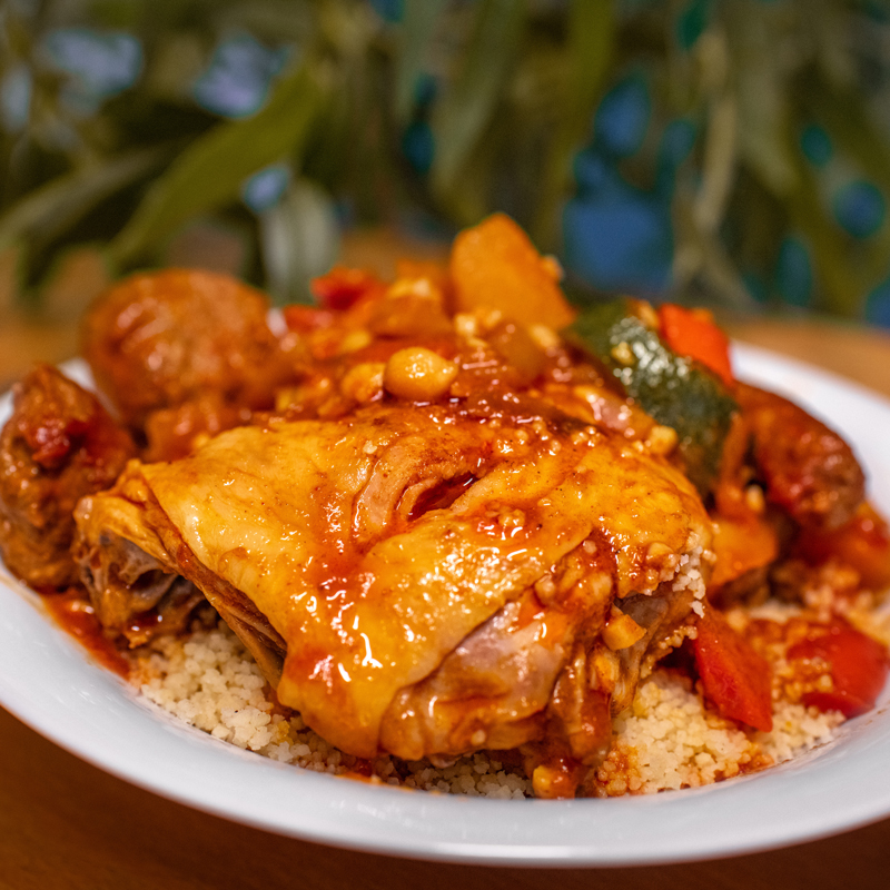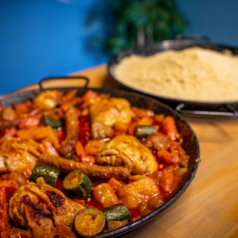 Notre couscous royal fait maison, riche et copieux est à manger en plat principal, sans entrée. Vous y trouverez la graine de couscous, la merguez, du poulet, l’agneau, et des boulettes de bœuf épicées, sans oublier ses légumes pour l’accompagner : pois chiche, courgettes, tomates, oignons, et carottes et bien sûr, la harissa. Le Couscous d’Ola Couscous Traiteur allie convivialité et dépaysement grâce à une recette authentique qui vous fera voyager à travers les saveurs orientales.